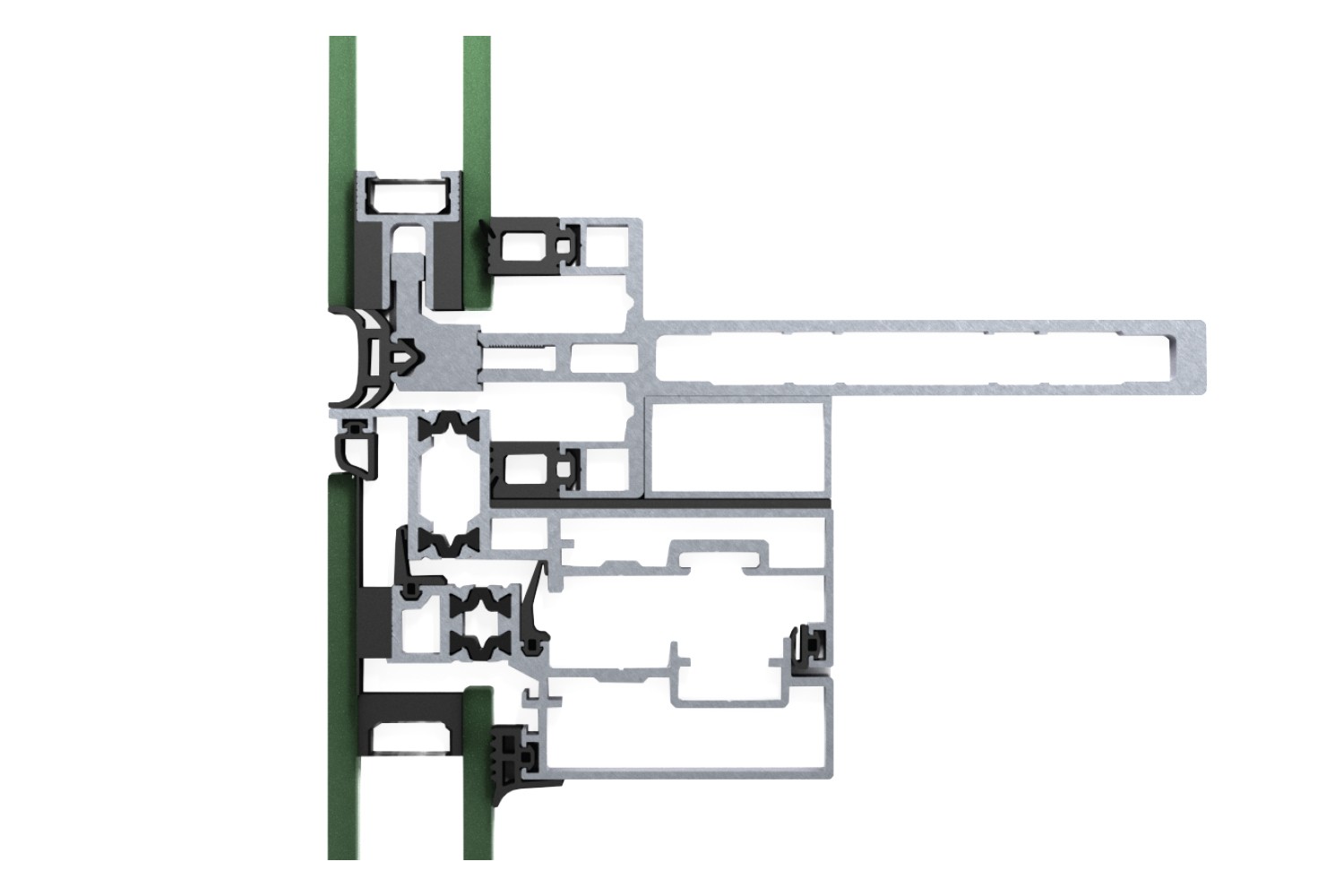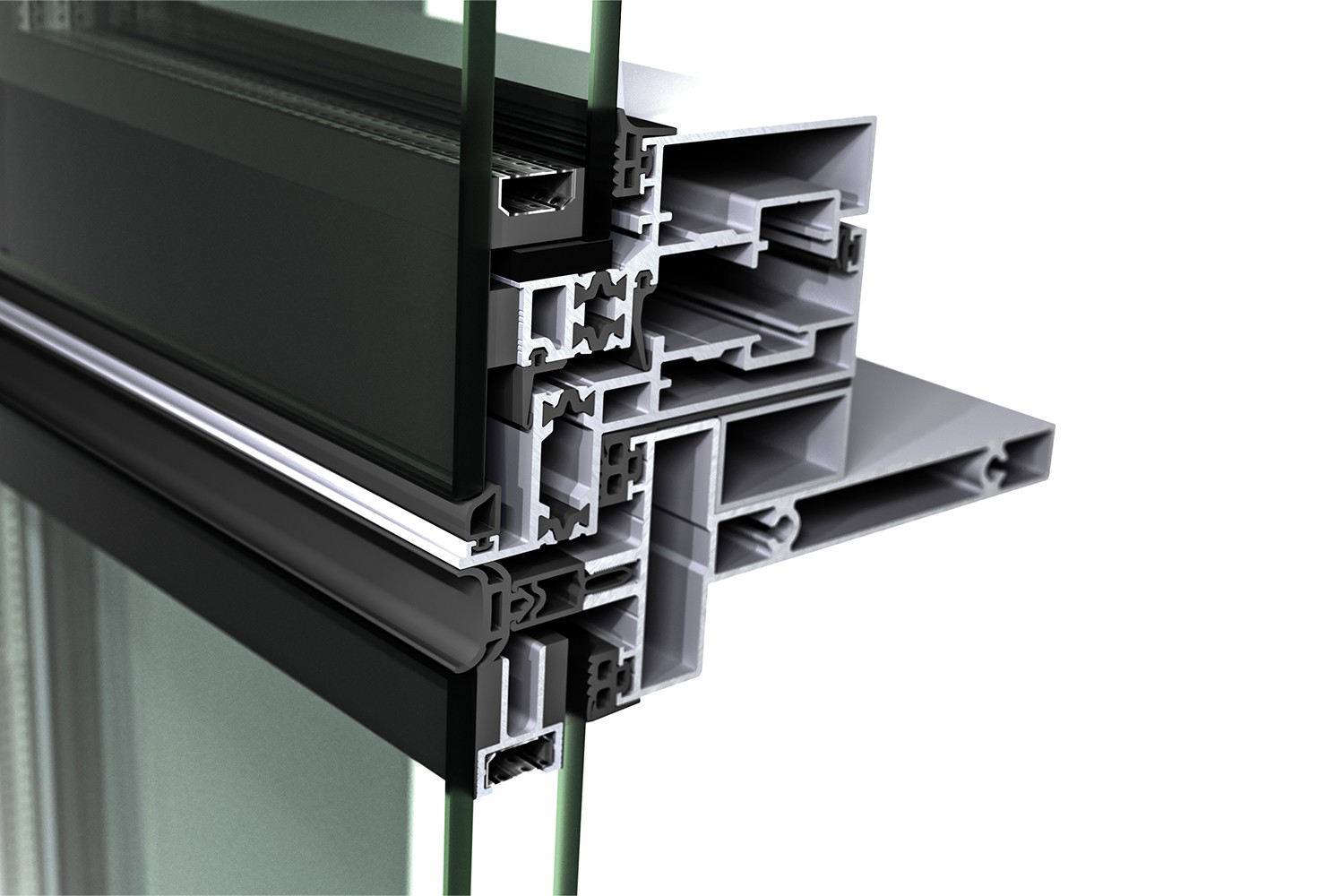 - Isı yalıtımına sahip minimal görünümlü kapak tasarımı sayesinde geniş cam yüzeyli cepheler için geliştirilmiş bir sistemdir.